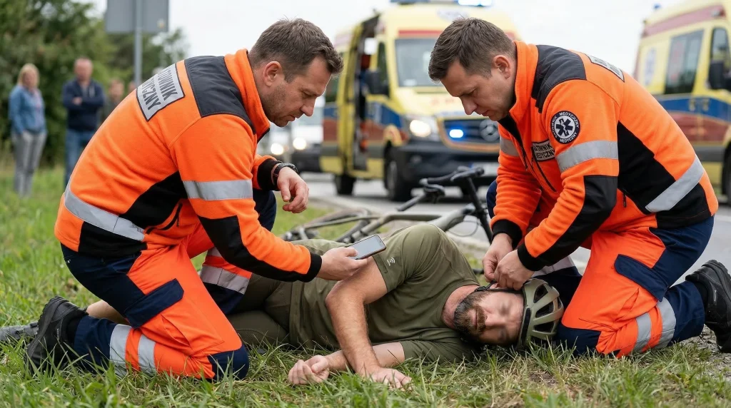 Koszulka ma wszyty tag NFC ICE oraz oznaczenie na rękawie. W nagłej sytuacji ratownik lub osoba postronna może przyłożyć telefon do oznaczenia i szybko zobaczyć profil ICE (kontakt alarmowy i ważne informacje).